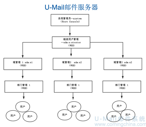金融行業分支機構多,管理復雜,而U-mail郵件系統支持長多達32級分支機構,完全滿足需求。且一機多域的功能可對多分支辦事處環境實現統一管理,對每個分支辦事處分配獨立域名,安排對應的管理員,而在同一域名下面還可以再細分機構部門,一共建立四級管理體系,實現分權擔責,井井有條的管理。