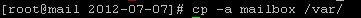 輸入cp -a mailbox /var/命令將解壓出的mailbox文件夾復制/var/目錄下,如下圖: