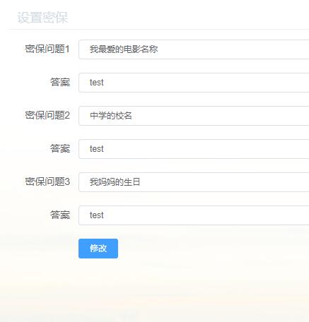 3、設(shè)置密保問題,可以自定義,也可以選擇已有問題。設(shè)置好之后點(diǎn)擊修改