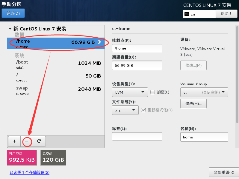 刪除 /home 分區(qū),將其空間加至 / 分區(qū)上面