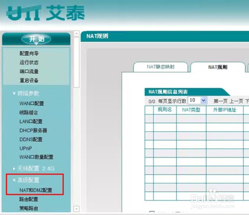1、登陸艾特路由器web管理界面之后,找到‘高級設置’---nat和DMZ配置(端口映射要是你找不到一般都是在nat里面)