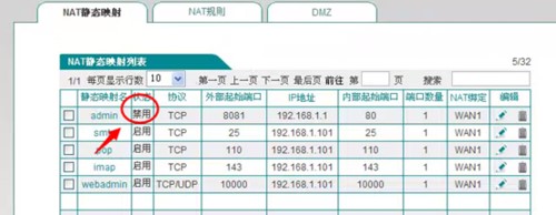 4、如果設置了端口映射不生效,查看狀態那一列是不是顯示“禁用”