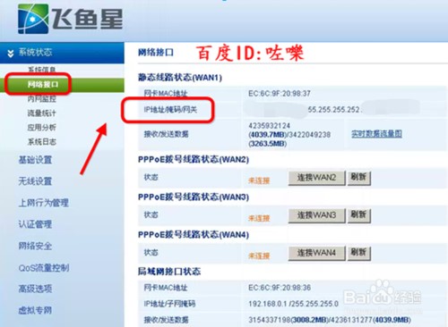 打開飛魚星系統狀態---網絡接口 (靜態鏈路里面可以查看公網IP地址)
