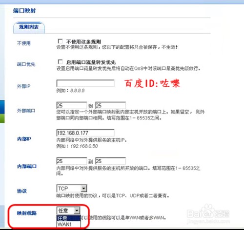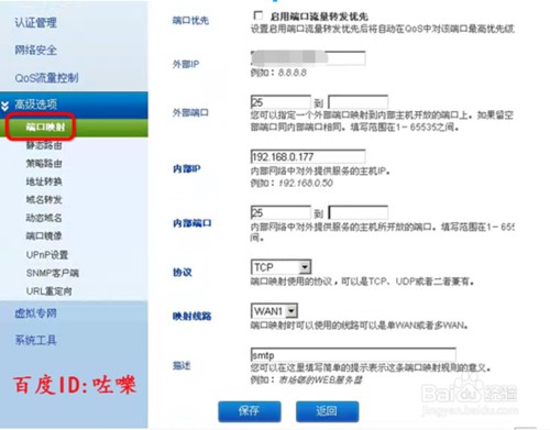 添加一個規則比如郵箱的SMTP端口,外部端口也是25(映射建議推薦11映射對應),添加公網IP地址