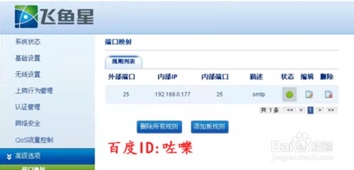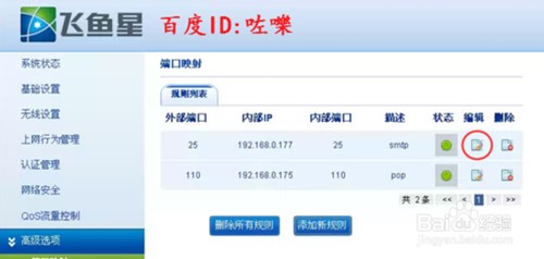 這里針對飛行魚上網行為網關設置端口映射做一個簡單的圖文教程,操作方法大體相同。不了解的小伙伴可以看一下