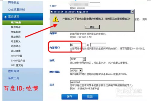 修改了路由器管理端口之后,再次返回設http 80端口映射,就不會報錯了