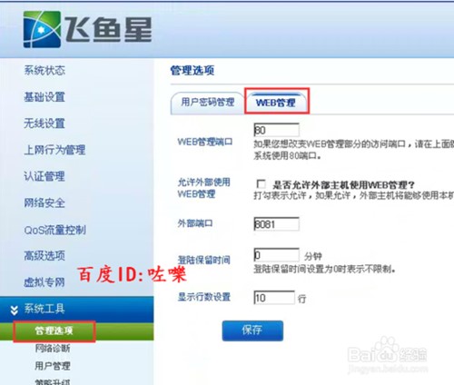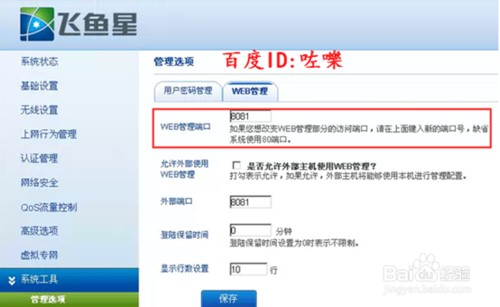 6、如圖把web管理端口設置為其他的,比如8081然后保存