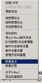 (在U-Mail托盤圖標(biāo)右建選擇“數(shù)據(jù)備份”)