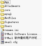 (1)重裝/升級(jí)前建議備份U-Mail安裝目錄下幾個(gè)比較重要的子目錄,如下圖: