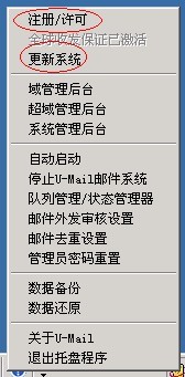 (5)重新安裝U-Mail,安裝路徑和目錄一定要和之前的相同,安裝完后導(dǎo)入授權(quán)文件、9.8版本需點(diǎn)擊更新系統(tǒng)進(jìn)行更新,如下圖: