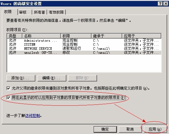 (8)覆蓋后,對(duì)Users和Netfiles目錄進(jìn)行權(quán)限集成,如下圖: