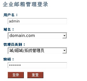 域管理后臺:http://mail.domain.com/webmail/admin/ 帳號:admin(管理單個域)
