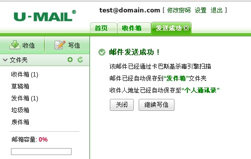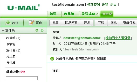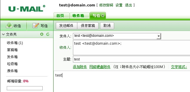 4、Webmail登錄郵箱后,測試收發郵件,如下圖: