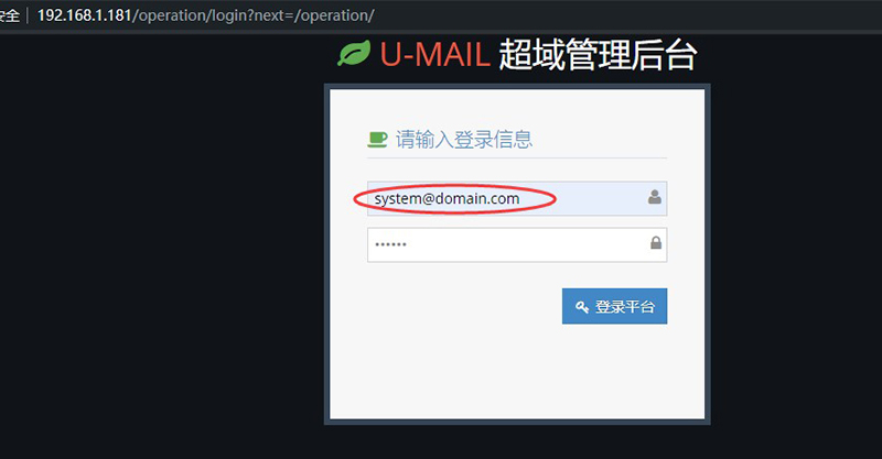 管理員賬號密碼:system@domain.com【將域名修改為您域名】