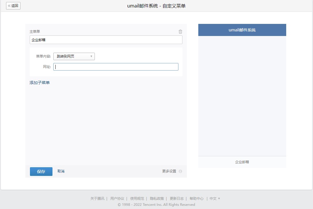 1) 添加主菜單, 輸入菜單名稱 企業(yè)郵箱