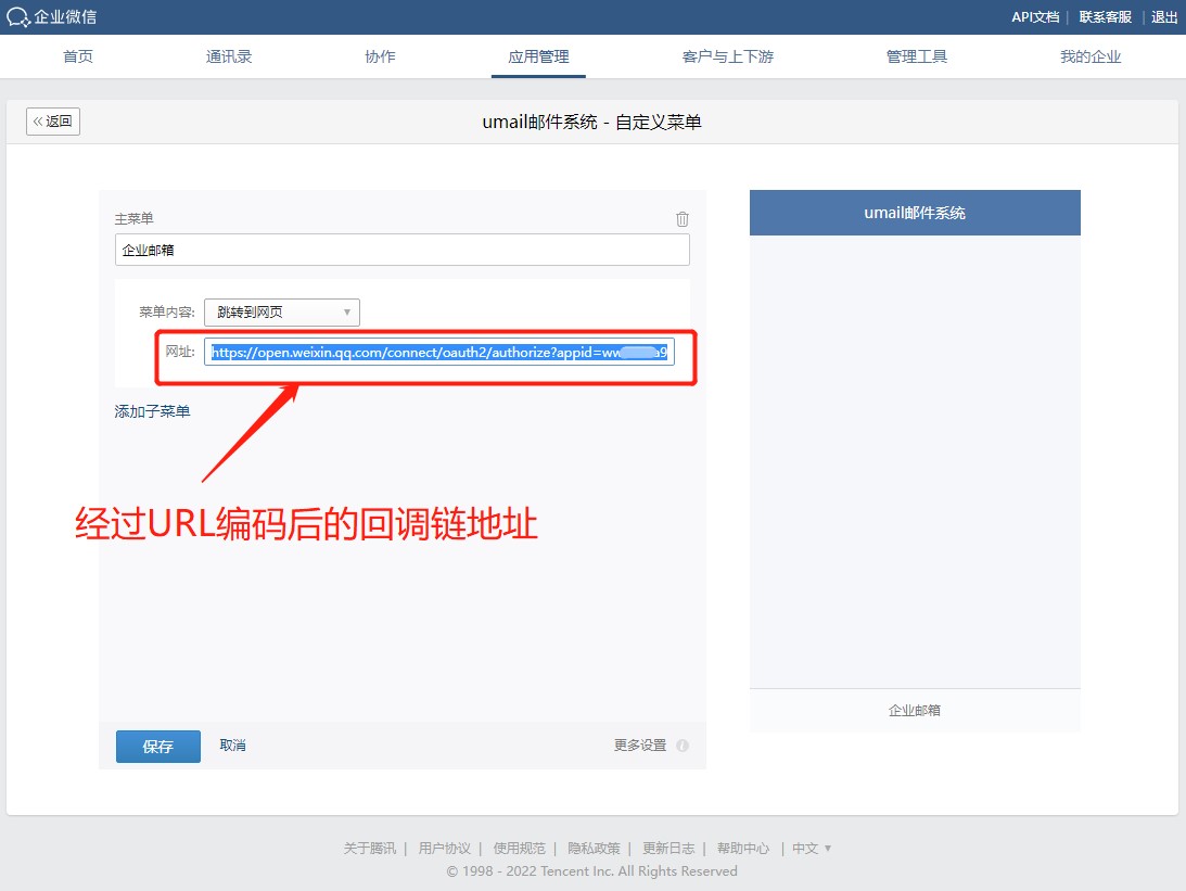 參考上一步示例中的編碼方式, 將郵箱二級域名的回調(diào)鏈生成.