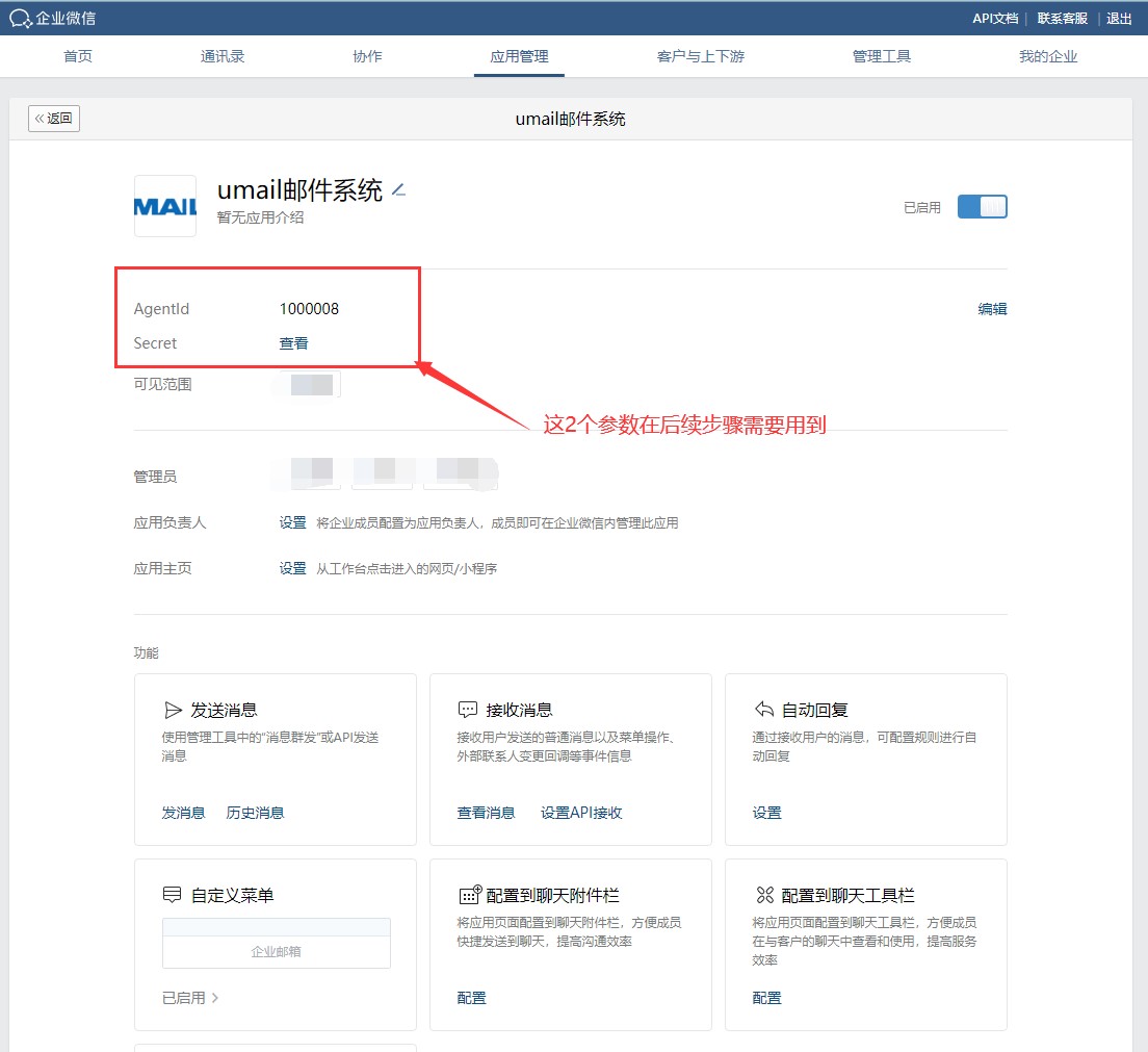 企業(yè)微信端郵件系統(tǒng)自建應(yīng)用配置完成, 啟用該應(yīng)用.