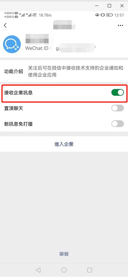 b) 打開個(gè)人微信, 通訊錄找到企業(yè)號, 設(shè)置接收企業(yè)消息