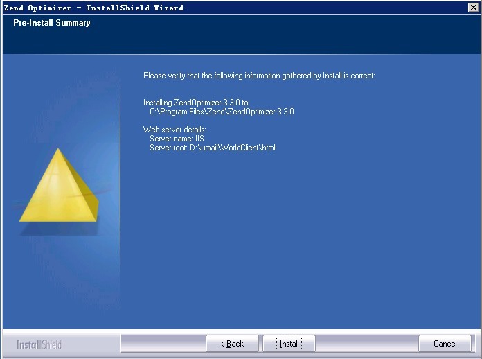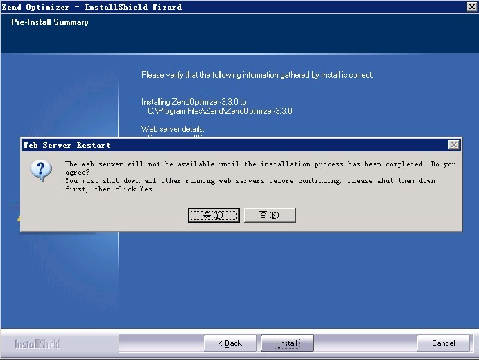 我們只需要把zend重新安裝一般即可。下載地址為http://www.amplydiscovery.net/download/soft/other/ZendOptimizer-3.3.3-Windows-i386.zip下載到服務器上面解壓安裝