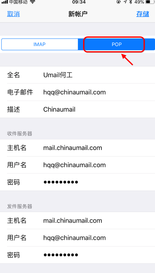 下面就是國內優秀企業郵箱U-Mail設置iPhone的pop賬號的教程。