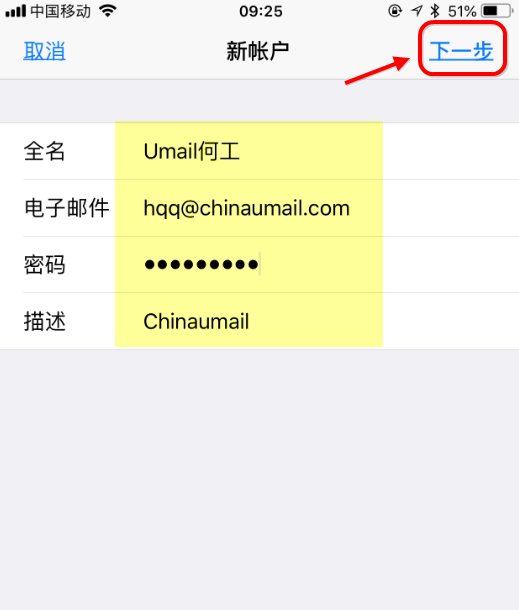 6 輸入用戶郵箱賬號(根據您的實際情況填寫)