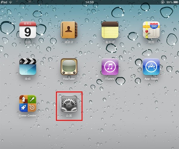 (1)在IPAD桌面上,找到并點擊“設置”按鈕,如下圖: