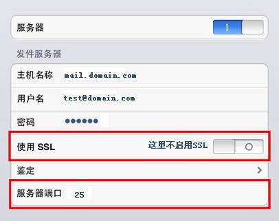(13)不啟用SSL,將發件服務器端口改成25,如下圖: