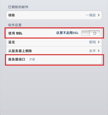 (15)不啟用SSL,將收件服務器端口改成110,如下圖:
