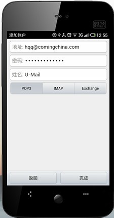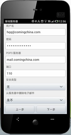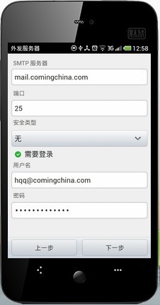 A、發(fā)送和接收服務(wù)器,可以填寫mail.comingchina.com或服務(wù)器公網(wǎng)IP(具體地址根據(jù)您的公司實際地址填寫)