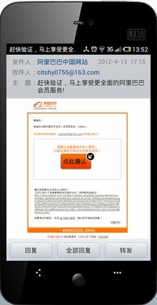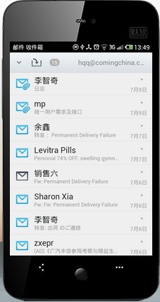 (7)設(shè)置完成,回到首頁菜單,點擊刷新,或接收郵件,進行收發(fā)郵件,如下圖: