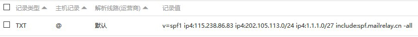 v=spf1 ip4:202.105.113.145(單IP,填寫您的郵件服務(wù)器公網(wǎng)IP)