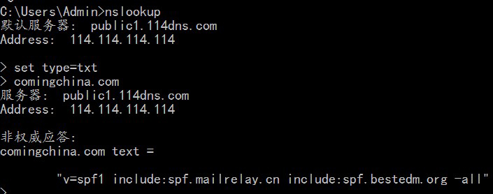 include:spf.mailrelay.cn 這個是表示,域名@mailrelay.cn下面授權(quán)的TXT主機,也是本域名授權(quán)的主機地址。