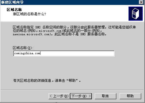 5.區(qū)域名稱:comingchina.com,單擊下一步